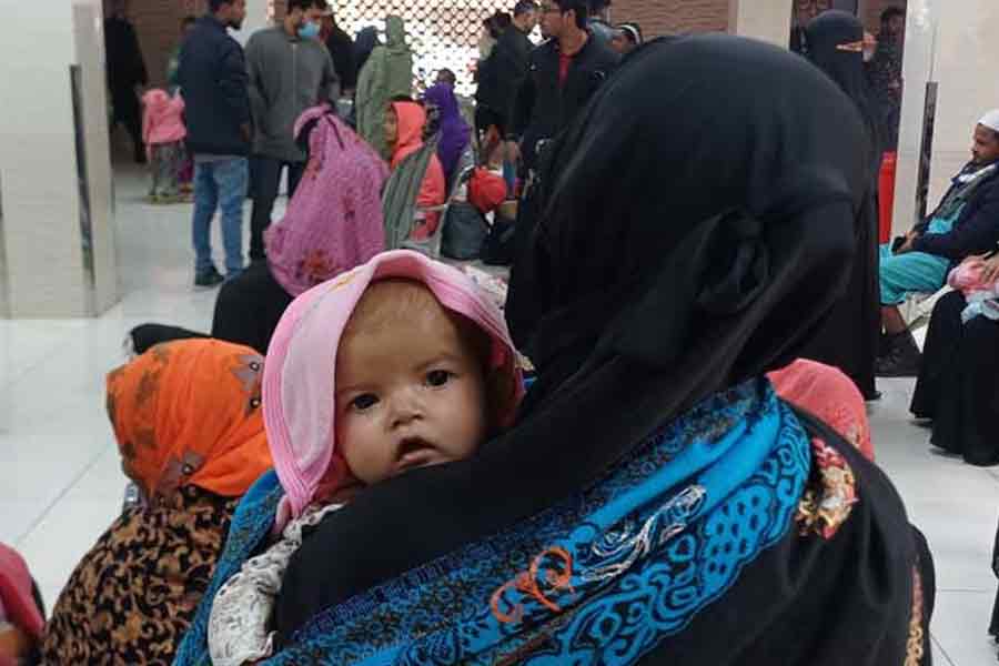 Mehnaz, the mother of one-month-old Ahnaf, said her son had been running a fever for the past two weeks. "The fever comes and goes, along with a cough. The medicine prescribed by a doctor reduced the cough, but the fever persists. That’s why I brought him here," she said.