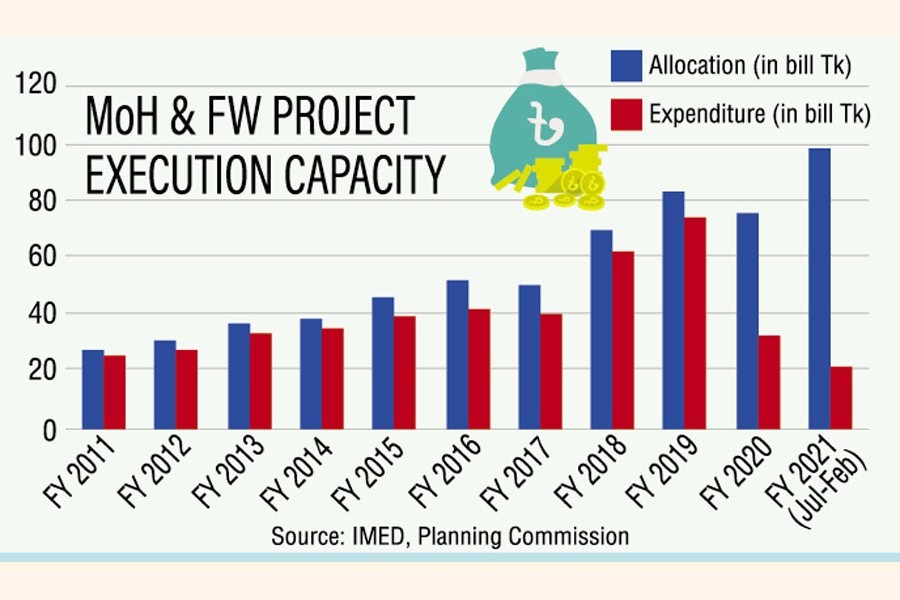 According to the Implementation Monitoring and Evaluation Division (IMED), the health ministry got the highest-ever budget allocation under the ADP in FY 2021. But, it had failed to duly implement the development projects, which got the government's highest priority.