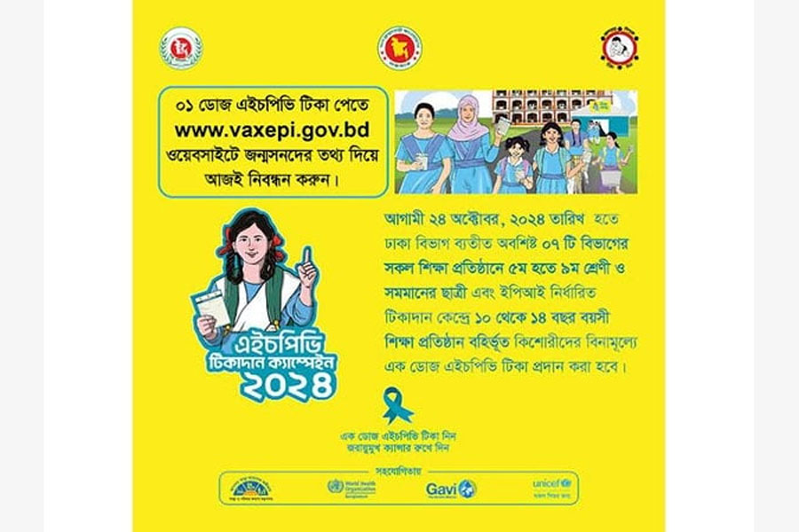 Earlier in 2023, about 15 lakh juvenile girls were inoculated with one dose of HPV vaccine in the Dhaka division and they did not witness any adverse reactions.