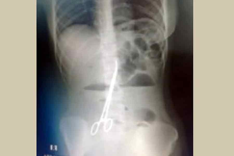 She recently visited the hospital again due to regular pain. An X-ray of her abdomen showed that surgeons had left a pair of scissors in her body during the surgery.