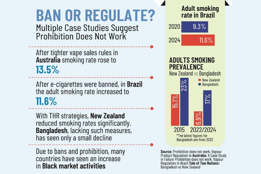 Zaman added that in Bangladesh, instead of restricting the import and sale of such products - which allows the illicit market to grow - the government should legalize and regulate vaping products. Proper policy would help lower smoking rates while supporting legitimate businesses.