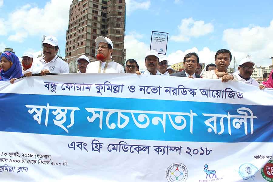 Novo Nordisk, in association with ‘Comilla Club’ and ‘Bondhu Forum Comilla’, has organised a free medical camp and rally about health awareness, Diabetics & Glaucoma in Comilla city recently.