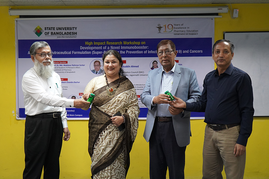 A group of researchers of the Department of Pharmacy, State University of Bangladesh (SUB), led by Prof Dr Md Moklesur Rahman Sarker has developed a novel immunobooster “Super-Boost” targeting to use for the prevention of any kind of infections including Covid-19 and cancers, according to a press statement.