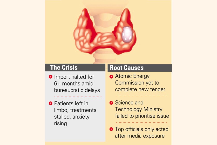 A prolonged shortage of radioactive iodine -- a critical post-surgical treatment for thyroid cancer -- has left patients across Bangladesh in limbo, with many facing delays of over six months amid growing uncertainty and distress.