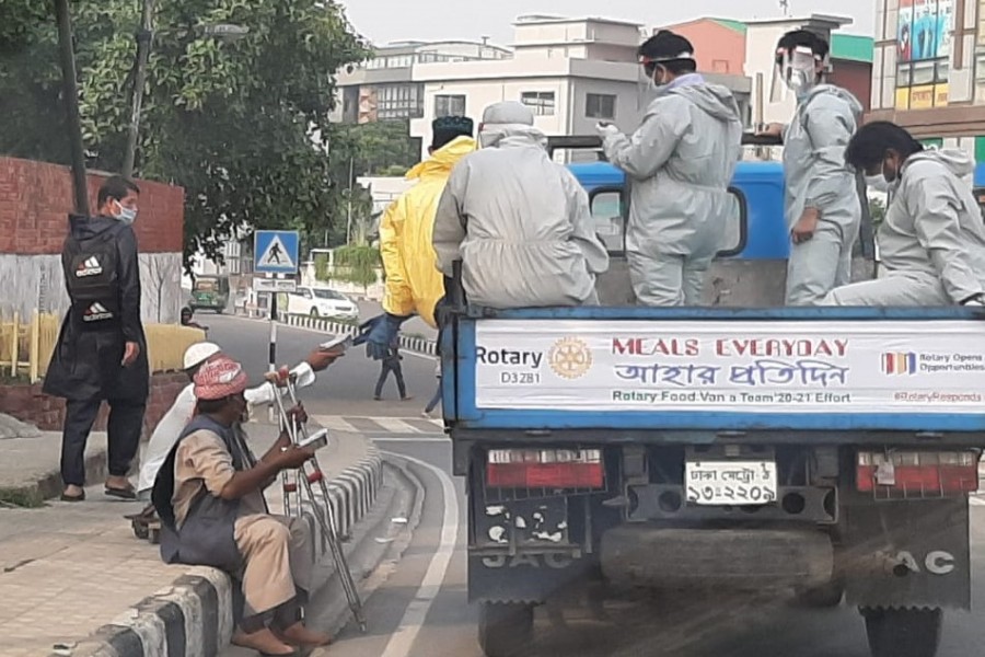 Essential food items under Rotary International Bangladesh's 'Meals Everyday' are being distributed every evening all over the country among the helpless people.