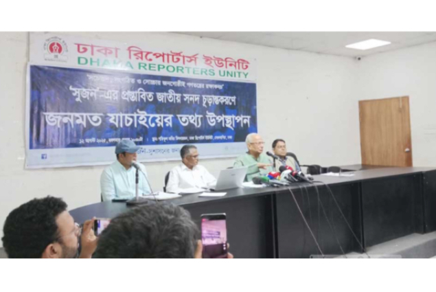 SHUJAN member Ekram Hossain presented the findings at a press conference on Tuesday at Dhaka Reporters Unity.