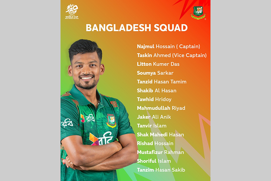The Bangladesh Cricket Board (BCB) on Tuesday announced the squad for the upcoming ICC Men's T20 World Cup, taking place next month in the USA and West Indies.