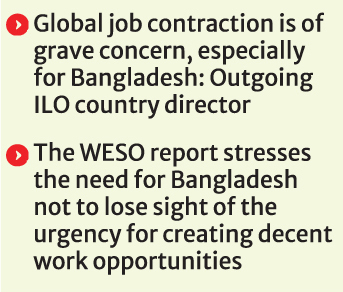 "The global contraction of jobs is of grave concern, especially for Bangladesh, which is undergoing political, economic, social and climatic transitions and sends over a million workers abroad," said Tuomo Poutiainen, the outgoing country director for ILO in Bangladesh.