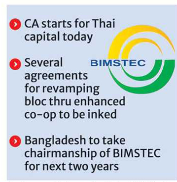 The summit is preceded by a meeting of BIMSTEC Senior Officials held on April 2 and a meeting of BIMSTEC Foreign or External Affairs Ministers on April 3. Foreign Adviser Touhid Hossain started for Bangkok Wednesday to attend the ministerial meet.