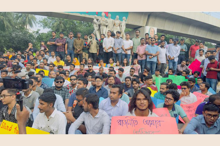 The protests began with a procession from the Central Shaheed Minar and ended in front of the Raju sculpture of the university in the evening, reports UNB.