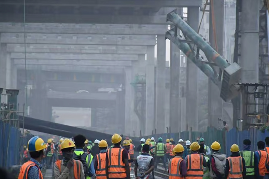 Dhaka expressway crane collapses onto railway, halting train operations for an hour