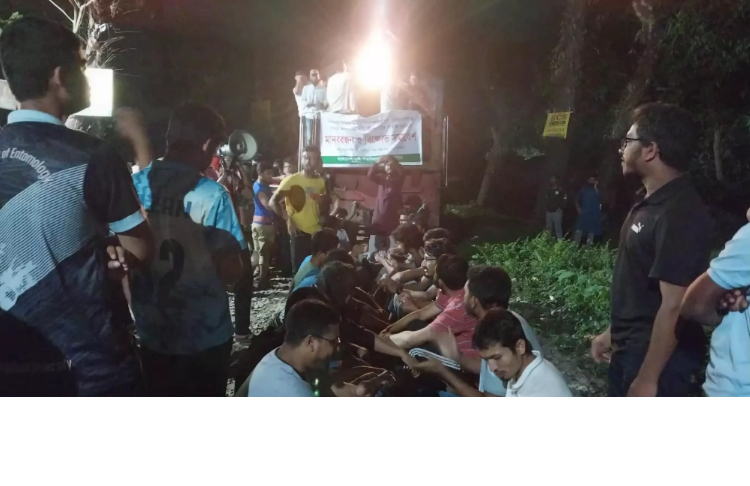 The students blocked the railway track near Jabbar’s Mor area of the university around 8:45 pm, expressing solidarity with the hunger-striking students at Dhaka University who are demanding reform of the Public Service Commission (PSC) and punishment for those involved in question leaks.