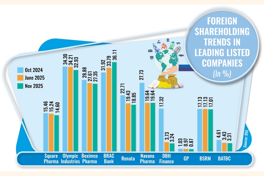 Foreign shareholding in Olympic Industries also dropped from 34.30 per cent to 32.93 per cent in the year through November this year.