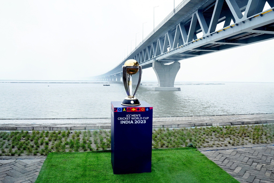 On its journey across the globe, the ICC Cricket World Cup 2023 Trophy made a stopover at the iconic Padma Multipurpose Bridge today (Monday).