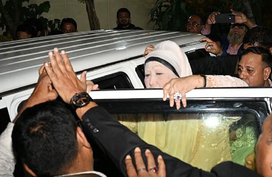 Khaleda Zia's motorcade left her Gulshan residence Firoza for the airport around 8:15pm.