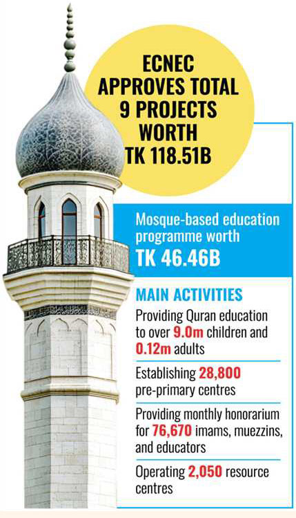 The Ecnec approved a widely-discussed project titled "Mosque-Based Children's and Mass Education Programme for Moral and Religious Development (Phase 8)" with an estimated cost of Tk 46.46 billion.