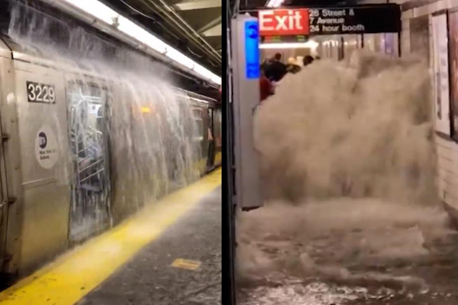 Several lines of the New York subway system are closed in Brooklyn as water poured down the steps and through the ceilings of some stations.