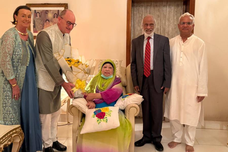 Outgoing German Ambassador to Bangladesh Achim Troster and his wife paid a courtesy call on BNP Chairperson and former Prime Minister Begum Khaleda Zia on Friday night.