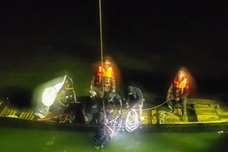 A unit from Goalanda Fire Service and a diving team from Aricha are conducting rescue efforts, while two additional diving units from Dhaka and Faridpur are en route.