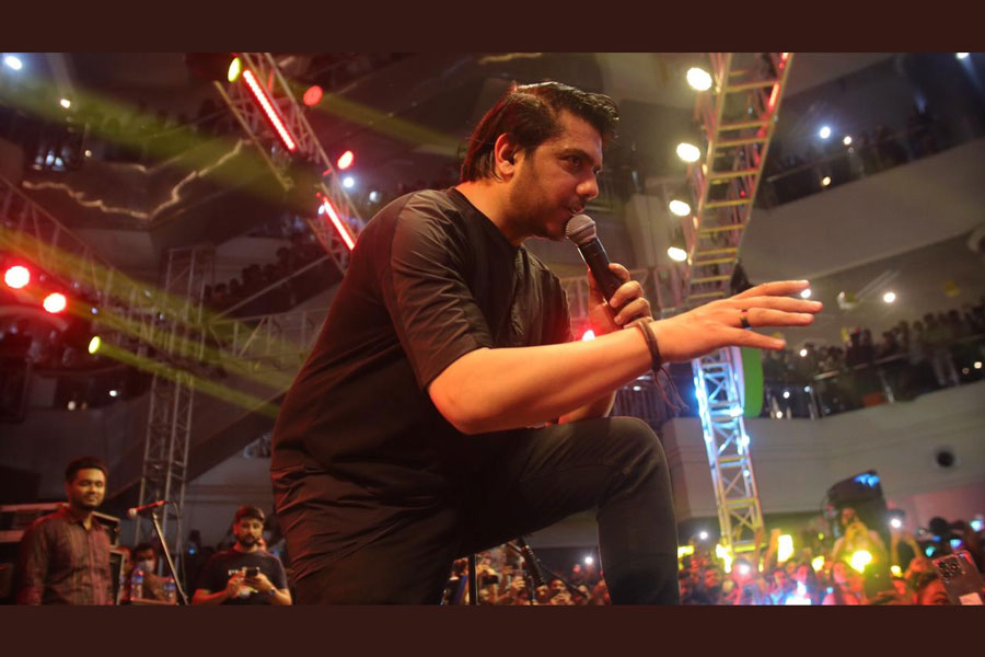 Jal, the main act of the night, finally took the stage to loud cheers from the audience. Frontman Goher Mumtaz kicked off their set with their hit song “Woh Lamhe,” followed by a series of popular tracks including “Aadat,” “Panchi,” and “Bikhra Hu Main.” This marked Jal’s first performance in Bangladesh since 2012, celebrating the 20th anniversary of their debut album, “Aadat”.