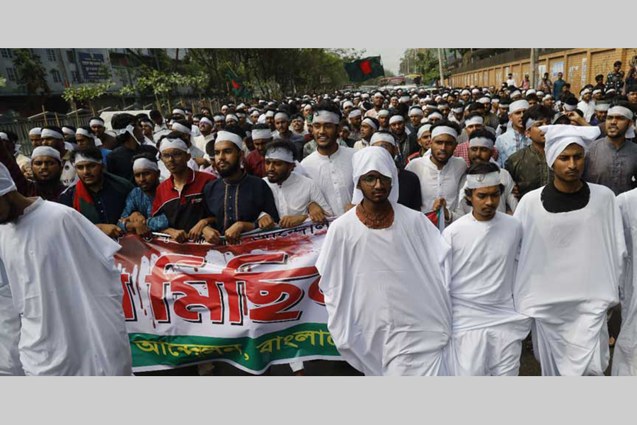 The students conducted the protest programme after the Jummah prayers at the mosque behind the Dhaka Polytechnic Institute. They marched to the Saat Rasta Intersection, turned around and then returned to the institute.