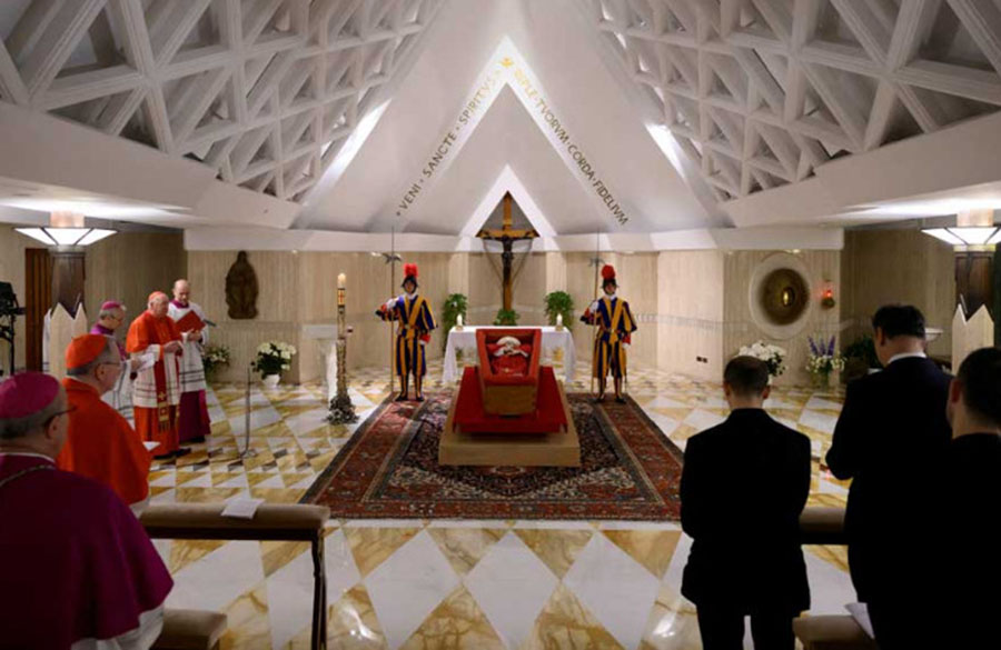 The Vatican said late on Monday that staff and officials within the Holy See could immediately start to pay their respects before the pope's body at the Santa Marta residence, where Francis set up home in 2013, shunning the grand, apostolic palace his predecessors had lived in.