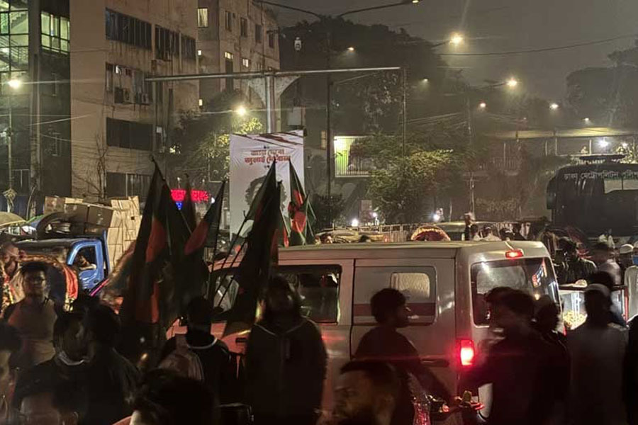 After the funeral and burial, the gathering at Shahbagh swelled again, with protesters raising slogans, such as “Delhi or Dhaka -- Dhaka, Dhaka” and “In Hadi’s memory, we do not fear death.”