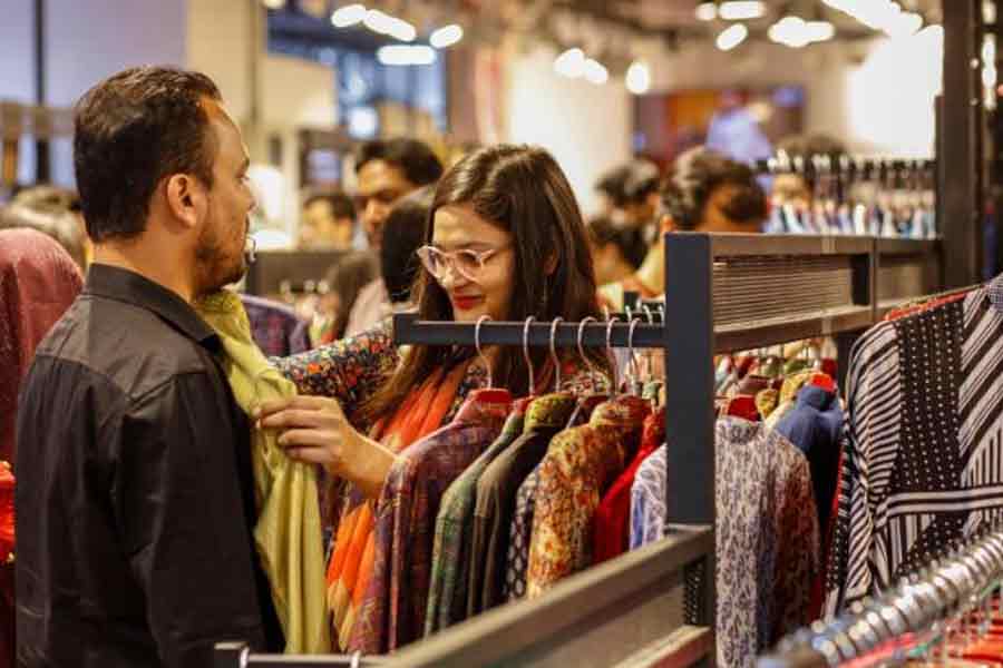 Salespersons of different brand shops, including Aarong, Ecstasy, Yellow, Cat's Eye, Sailor, Grameen UNIQLO, Deshi Dosh, Richman, Infinity, Gentle Park, Easy and Dorji Bari were seen busy attending to the shoppers.