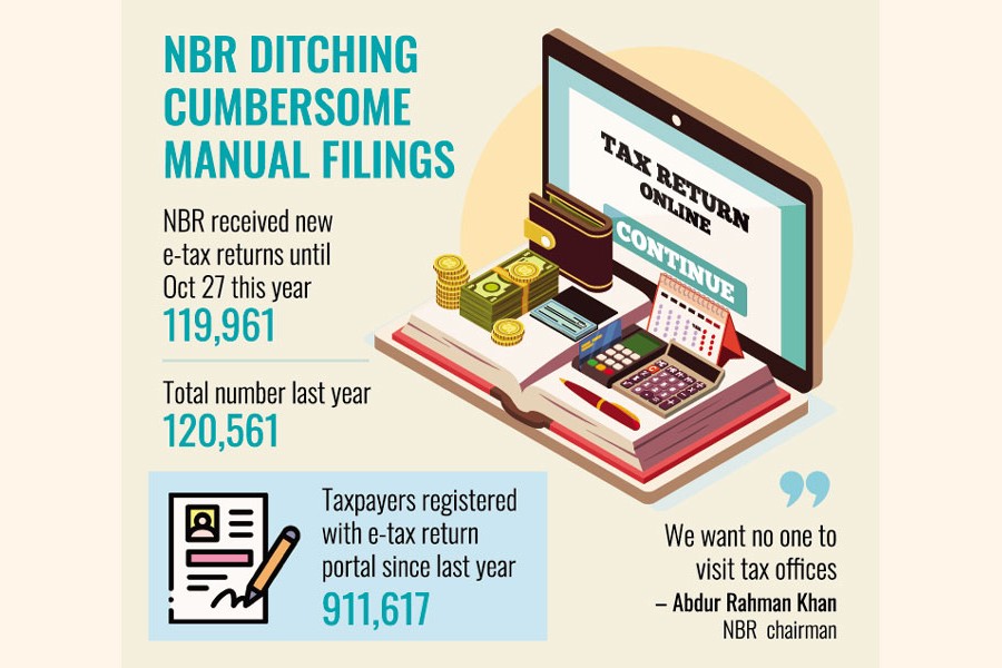 The e-filing platform, www.etaxnbr.gov.bd, is now available for individual taxpayers to submit their returns, acquire tax-acknowledgment certificates, and receive tax-return certificates.