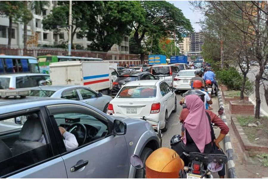 From 11am onwards, traffic movement came to a grinding halt on several key stretches — from Kadam Fountain to Matsya Bhaban via Shahbagh-Kakrail, from Shahbagh to National Press Club through Matsya Bhaban and Kakrail, and from the Kakrail Church intersection to the InterContinental Dhaka hotel via Kakrail Mosque.