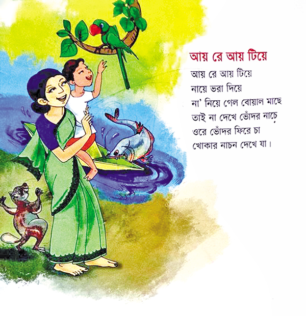"I certainly want my child to know the rhymes that I learned. However, the days of turning page after page are not there like before. Still, I read him some of the rhymes as a lullaby at night. 'Aay aay chadmama', 'Khokon Khokon daak pari', 'Aay re aay tiye,' etc., are the rhymes I recite to my son whenever I get time. He seems to enjoy these very much."