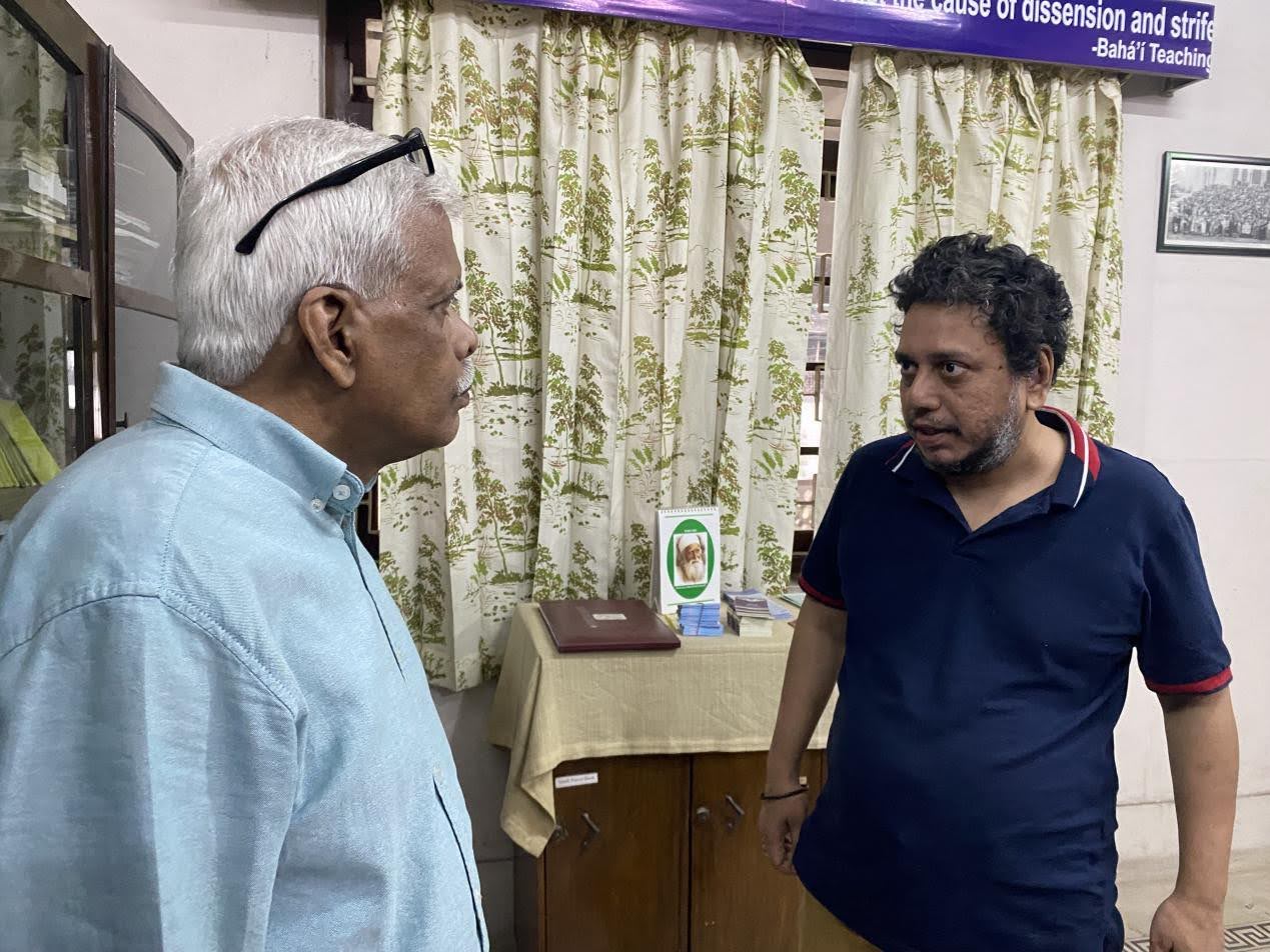 At this juncture, Herr Muhammad Tanim Nowshad chipped in with valuable inputs. An author of Islampurbo Iraner Dhormomot (Religions of Pre-Islamic Iran), he asked Mahmudul Haq if Baha'is are being persecuted in Pakistan. Mahmud replied in the negative: there, like in Iran, everywhere, citizen's religion is taken into account. Baha'i faith is nationally approved. Imran Khan had ordered that the Baha'i kids should read their religious textbooks from grades one to five.