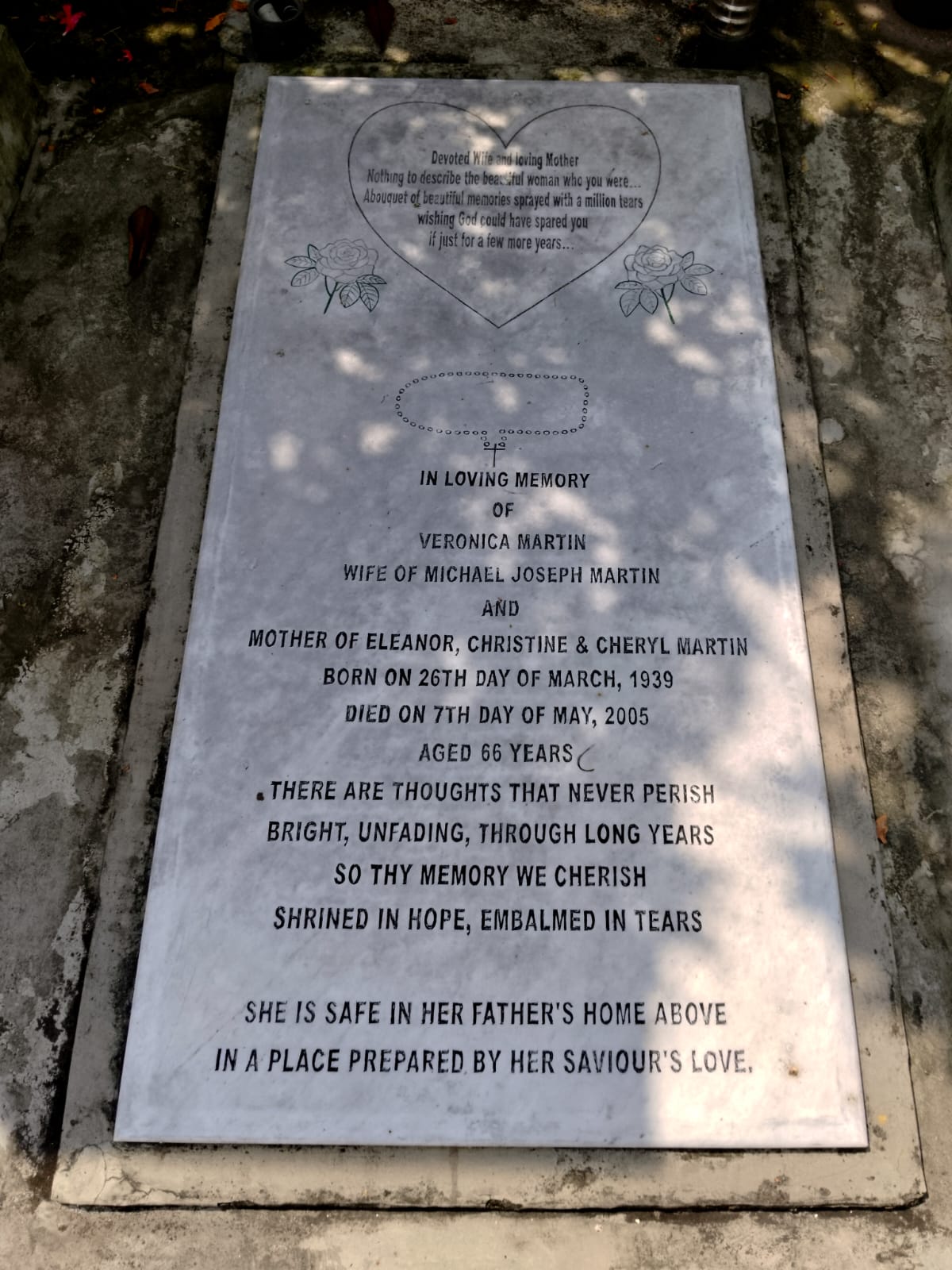 A beautiful, sweet note was written on the epitaph of a 66-year-old lady's grave who died in 2005. It might be written by her husband, who still can't forget her. They might visit the grave with heavy hearts.