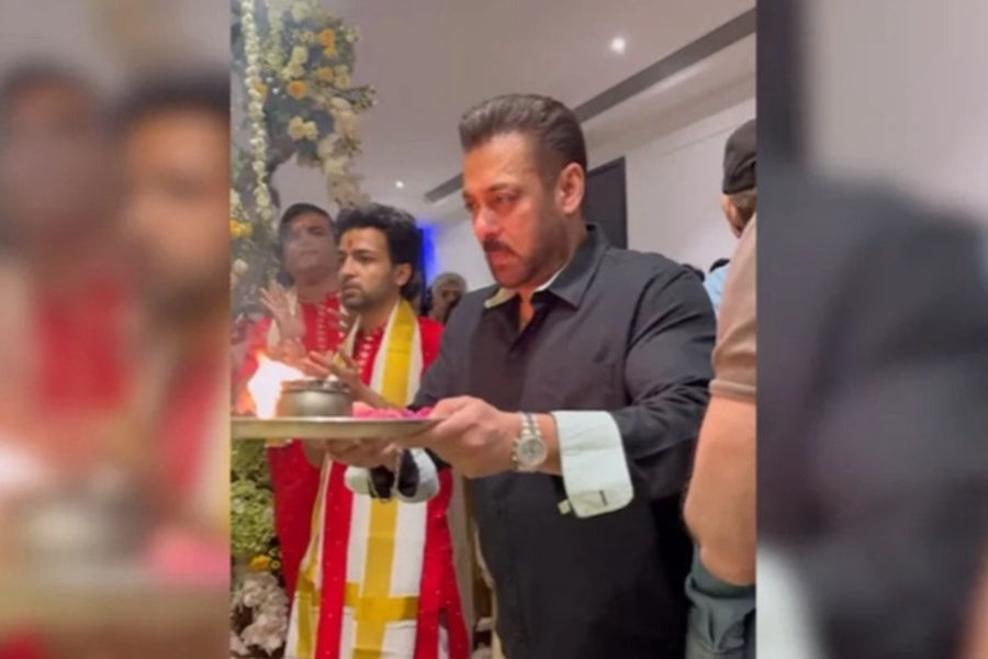 In the clip, Salman’s mother Salma Khan is seen performing the aarti, followed by his father Salim Khan. Salman, dressed in a black shirt and beige trousers, then performed the ritual.