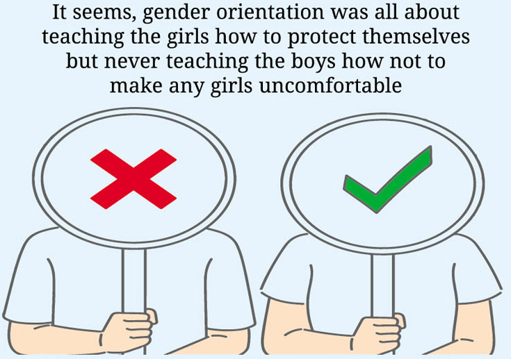 "As a grown up man, now I realize how badly boys need those teaching in their childhood. Our parents never discussed anything about bad touch and harassment. It seems, gender orientation was all about teaching the girls how to protect themselves but never teaching the boys how not to make any girls uncomfortable," shared Shahriar Tanjim, a communication manager at a renowned multinational company in Dhaka.