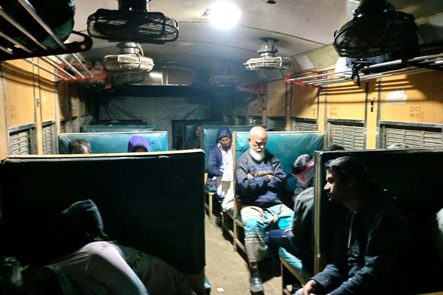 But it turned out we had boarded a second-class mail train that primarily freights goods and drags along a few battered passenger coaches. Our compartment had semi-hard benches that were certainly not comfortable for long journeys and only one overhead light in the middle that barely lit the entire space, with the door area remaining gloomy. The ride was dirt cheap, only Tk 40 as opposed to Tk 105 in a Shovan Chair seat on an intercity train, but that was not what we wanted at the expense of comfort and security.