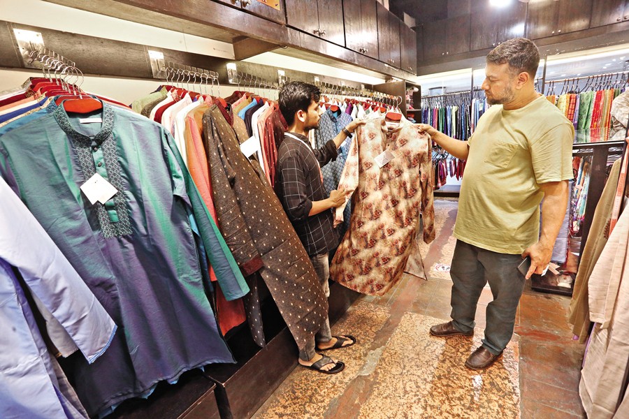 Rabbi Khandkar Nadeem, the floor in-charge at 'Umbrella' in Bashundhara shopping mall, highlighted the outlet's new Punjabi designs for Eid. "Eid sales predominantly revolve around our Punjabi collection, attracting buyers of all ages. We also offer Hawaiian shirts and T-shirts," he said.