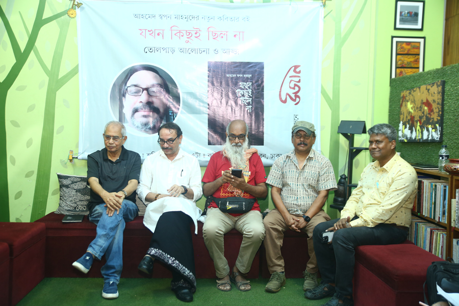 A literary discussion on poet Ahmed Swapan Mahmud’s latest collection of poems titled "Jakhan Kichhu-e Chhilo Na (When There Was Nothing) was held at the Kabita Café in Dhaka city’s Kataban area on Saturday evening.