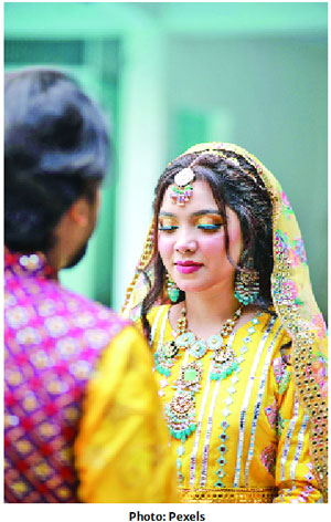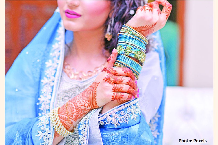 Next, we have Walima, where you can keep fit with pastel shades like mint green, powder blue, or baby pink. A simple Jamdani saree with a neat bun will make you look fresh. Your makeup should be elegant with glowing skin, soft brown eyeshadow and pretty pinkish nude lips. Add some sparkle by adding dainty pieces like a simple bracelet and shiny choker.