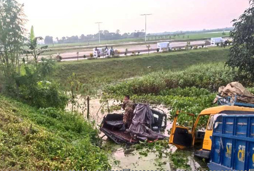 A truck has rammed into an Army patrol vehicle in Mohonpur Upazila of Rajshahi, sending both vehicles into a roadside ditch.