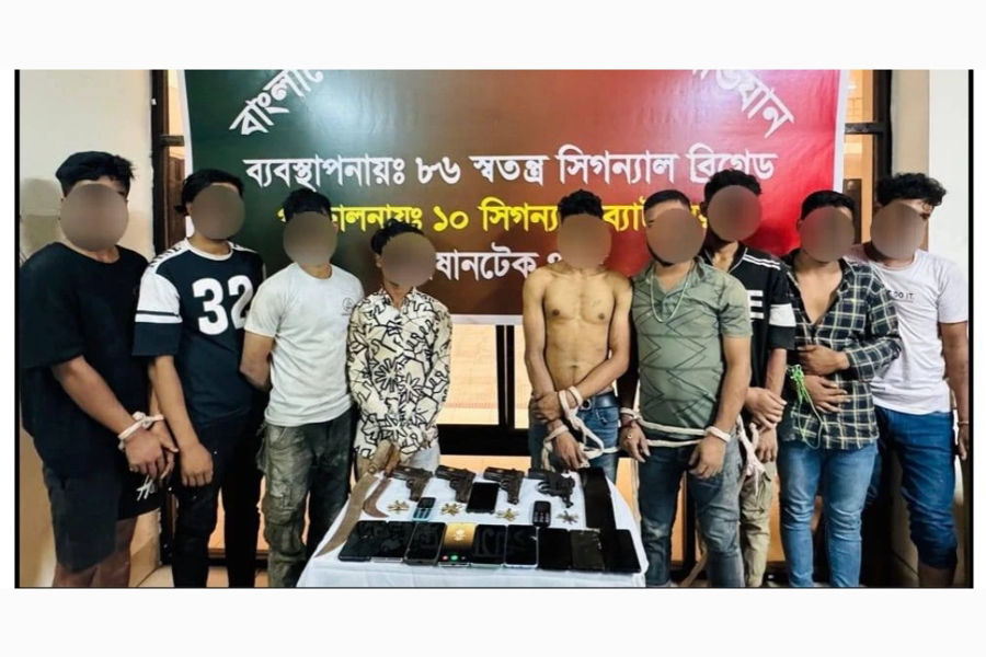Army personnel have detained 10 members of terrorist group ‘Hitlu Babu Gang’ with arms and ammunition from Matikata area of Dhaka during a late night drive.
