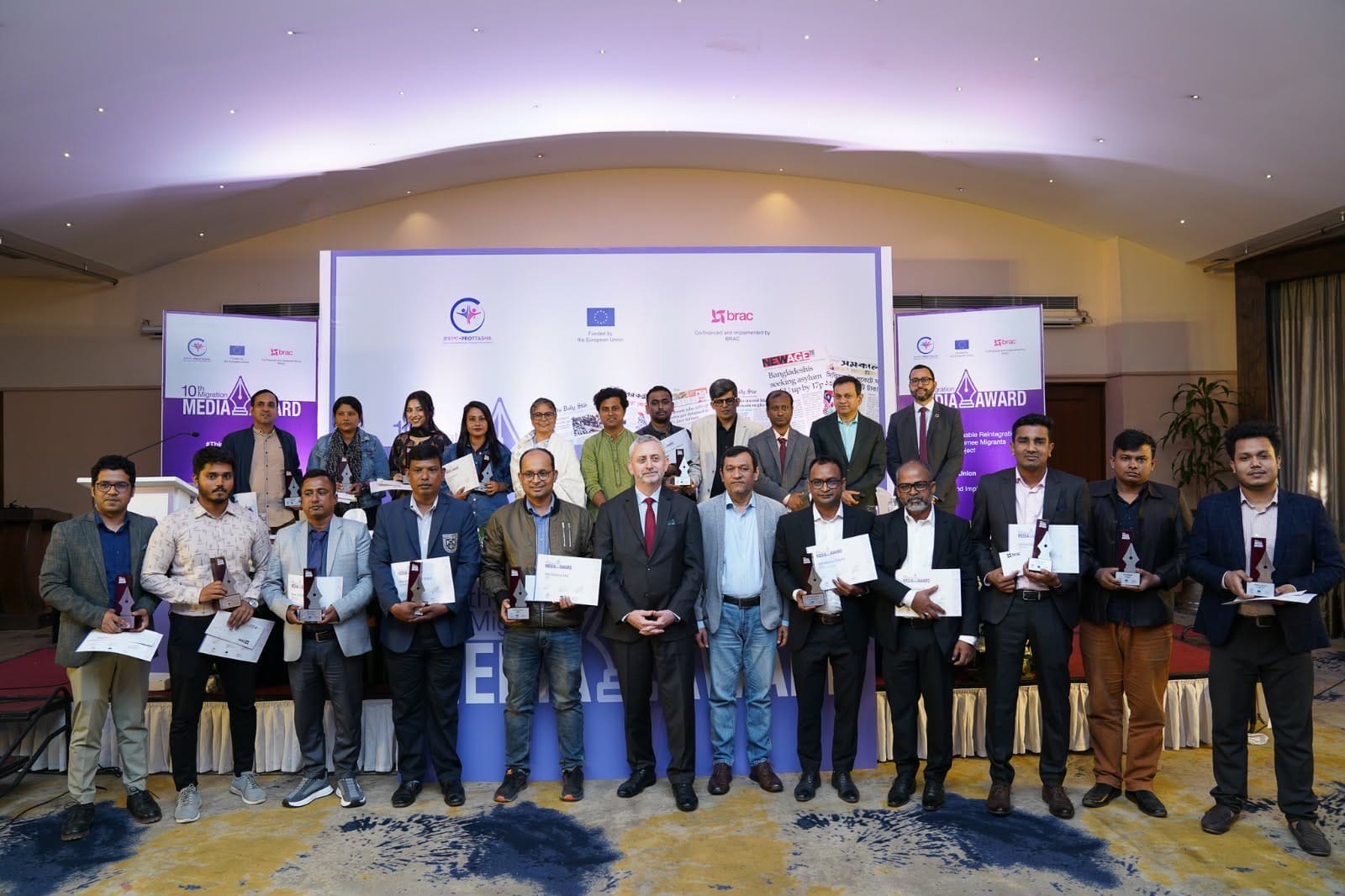 Presenting the awards, EU Ambassador Michael Miller said journalists play a crucial role in bringing forward the voices of migrants. Emphasising the need to curb irregular migration from Bangladesh and ensure accountability, he said migration must be safe. Under the Europe Talent Partnership, Europe will legally recruit skilled and semi-skilled workers from Bangladesh, while the reintegration of returnees should also be prioritised by destination countries.