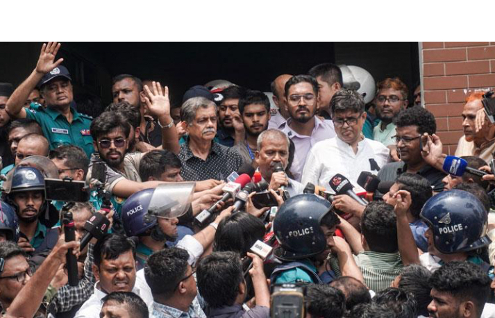After remaining confined for nearly six hours, Law Adviser Asif Nazrul, Education Adviser CR Abrar and CA’s Press secretary Shafiqul Alam managed to come out from Milestone School and College in Diabari area of Uttara ‘through its backdoor exit’ amid student protests.