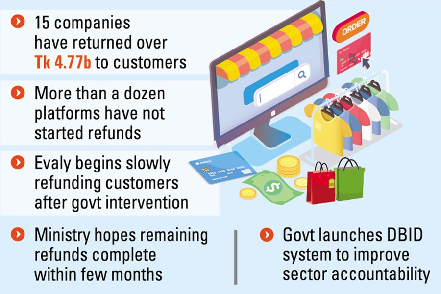 Data from the Ministry of Commerce shows that total stuck funds across 35 troubled online shopping platforms amount to a staggering Tk 5.42 billion, while 15 companies have returned over Tk 4.77 billion to customers so far.