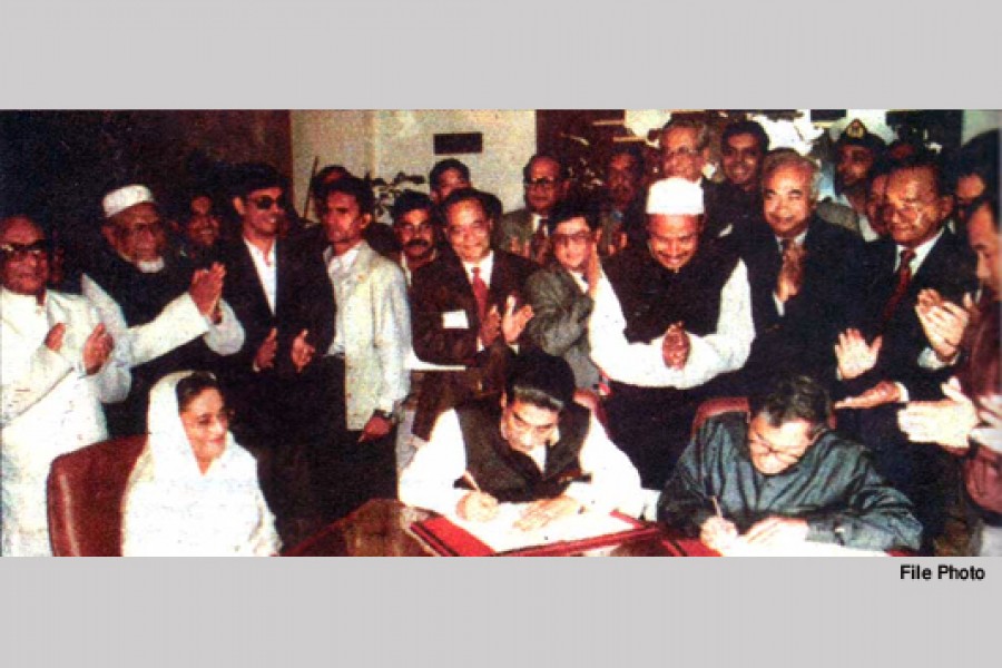 The accord was signed on December 2 in 1997 between the government and the Parbatya Chattagram Jana Sanghati Samiti (PCJSS) during the first tenure of Prime Minister Sheikh Hasina, ending bloody conflicts in three hill districts.