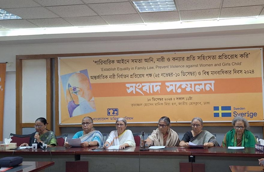 The press conference was organised by BMP Central Legal Aid Sub-Committee and Sweden Sverige, in recognition of the International Campaign for the Elimination of Violence Against Women (November 25 – December 10) and World Human Rights Day 2024.