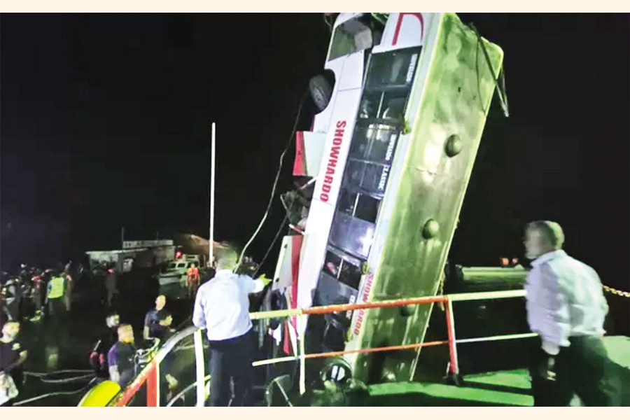 The fatal accident occurred at around 5:15pm on Wednesday when the Souhardo Paribahan bus lost control at Daulatdia ghat no 3 and plunged into the river.
