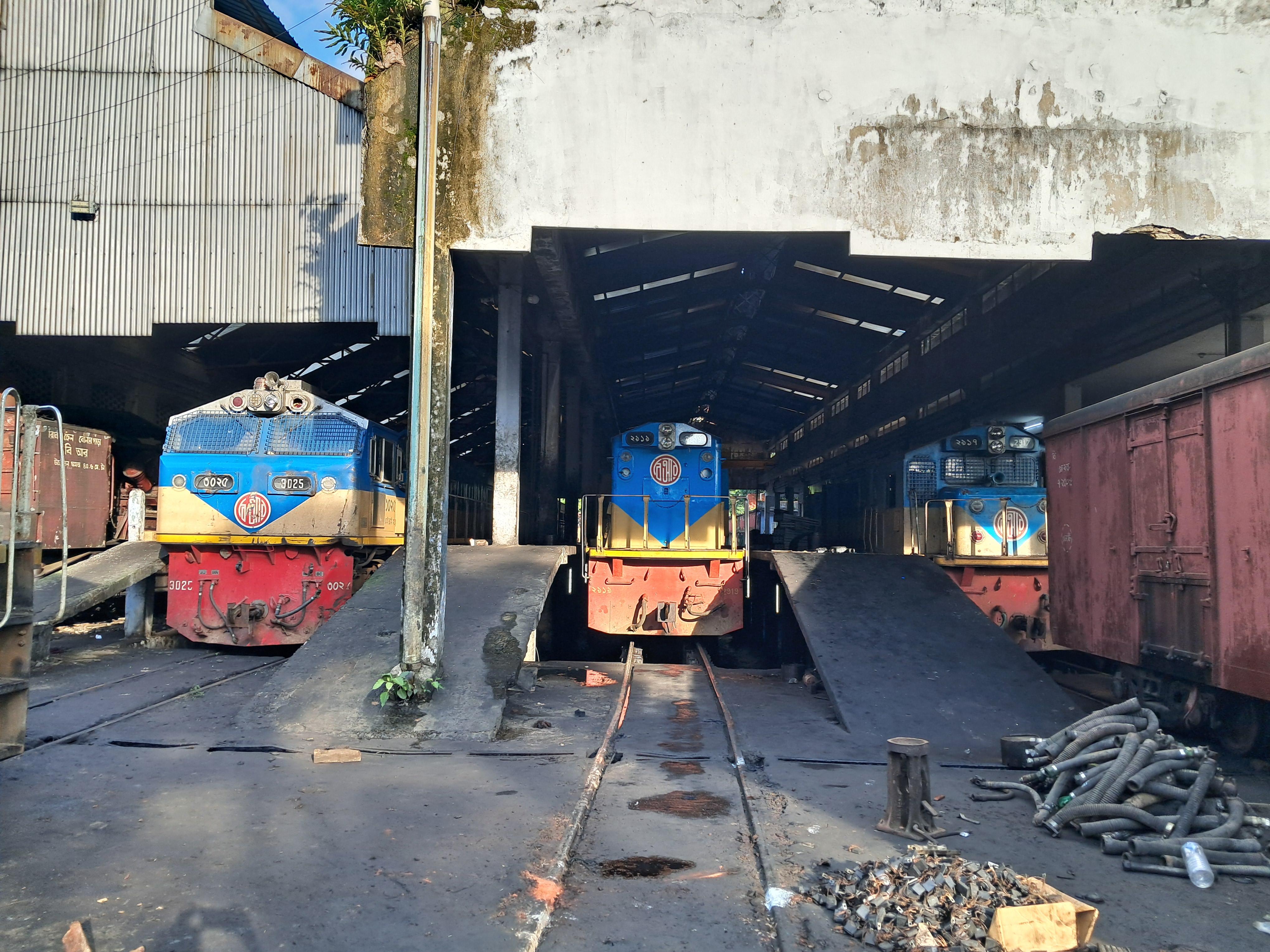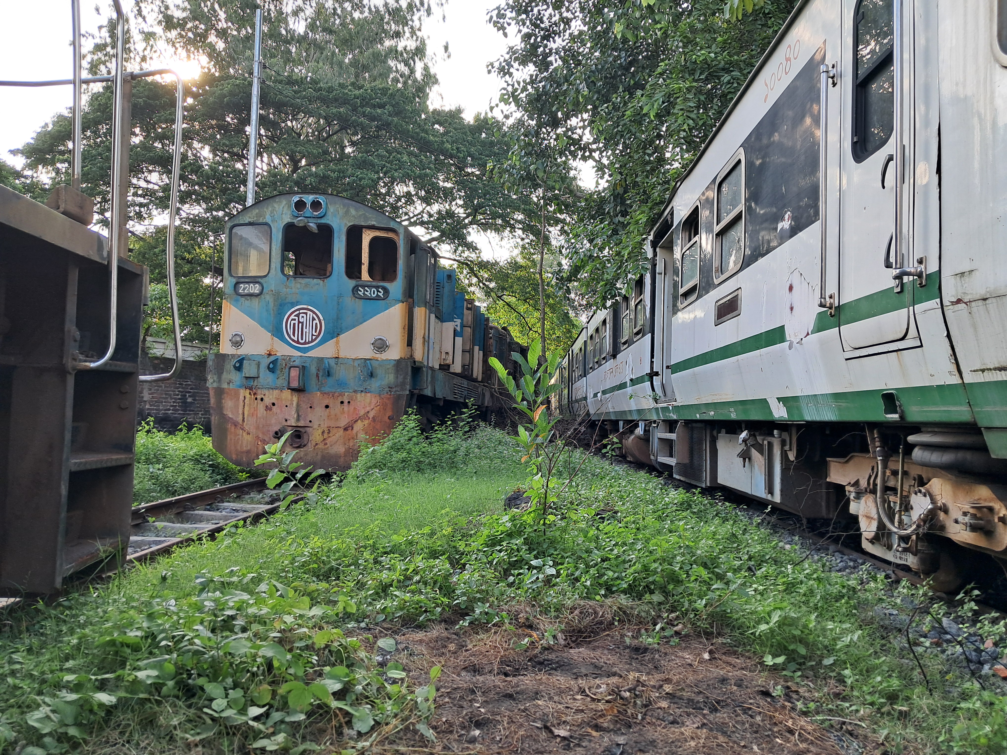 It is a warm and humid July afternoon, and we are at the Pahartali locomotive shed in Chattogram. Located across the Pahartali railway station, behind a weathered red wall with dark patches, it is partially visible to train passengers. Built during the British era, it houses locomotives, as well as handles small repairs and regular maintenance.