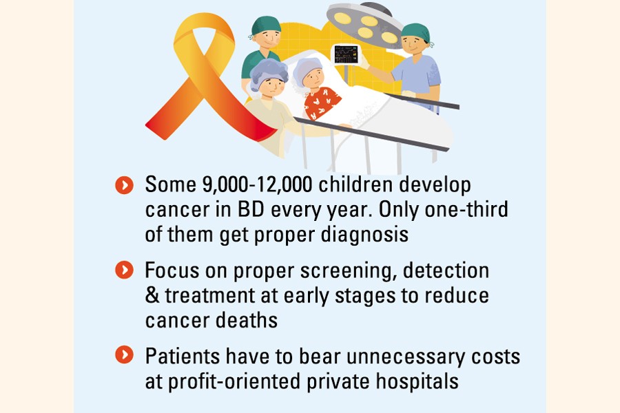 It is estimated that some 9,000-12,000 children develop cancer in Bangladesh every year. However, only one-third of them receive proper diagnosis, according to the World Child Cancer (WCC), a UK-based international charity for kids.