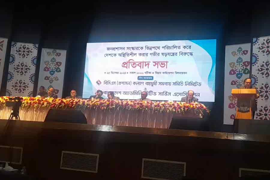 The Bangladesh Administrative Service Association and BCS (Administration) Kalyan Bahumukhi Samabay Samity Limited arranged the protest meeting at the Biam Foundation Auditorium in the Esktaon Area of Dhaka.